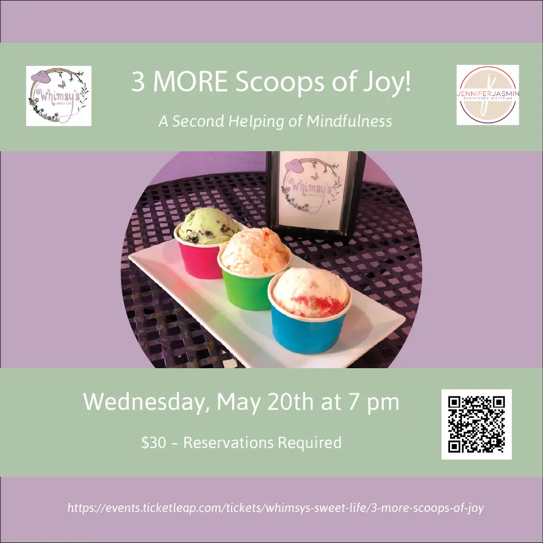 If you “love” ice cream you won’t want to miss this chance to prove it! This event is perfect for those new to, and curious about mindfulness, as well as those who are looking to build past mindful eating experiences into a practice. Join us for a tasty chat as we get to know each other and sample three flavors of ice cream (any flavor of your choosing!) Local Registered Dietitian Jen Jasmin will review the basics of what mindful eating is, and isn’t, as we build community around reducing guilt and increasing the joy we feel while eating delicious treats. We’ll also work on deepening our understanding of why we choose the flavors we choose, and how much ice cream satisfies our bodies and souls.